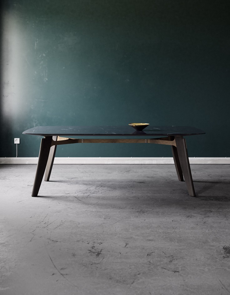 Τραπέζι με μασίφ ξύλινα πόδια, μεταλλικά στοιχεία και επιφάνεια τύπου οβάλ. Διαθέσιμο και με επέκταση.
